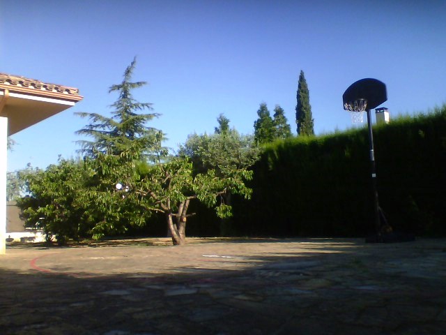 Amplia zona de jardín, con piscina, árboles frutales y zona de barbacoa cubierta con acceso directo a la cocina.