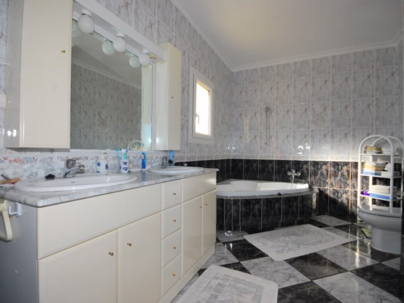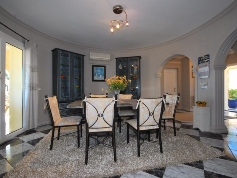 Земельный участок площадью 2264 м2 частично выложен плиткой. На территории есть большой собственный бассейн с мозаичным рисунком на дне, а также зона барбекю и крытая терраса, на которой так приятно посидеть в шезлонге, наслаждаясь закатом, слушая сверчков, потрескивающие угольки и вдыхая теплые ароматы моря, цветов и средиземноморского воздуха.