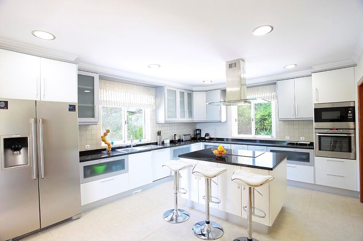 VAP11408 House 4 Bedrooms +1 located in a privileged area with panoramic views in Quarteira, a few minutes drive from Vale do Lobo and Vale do Garrão Beach. Completed in 2013 with luxury finishes consists of five bedrooms, five bathrooms, a living room and dining room, gym, balconies and garage with storage area. It has air conditioning, underfloor heating, central vacuum and alarm. Outside there is pool with heating system and a garden with dining area and leisure. Ideal for those looking to live a life without worries.