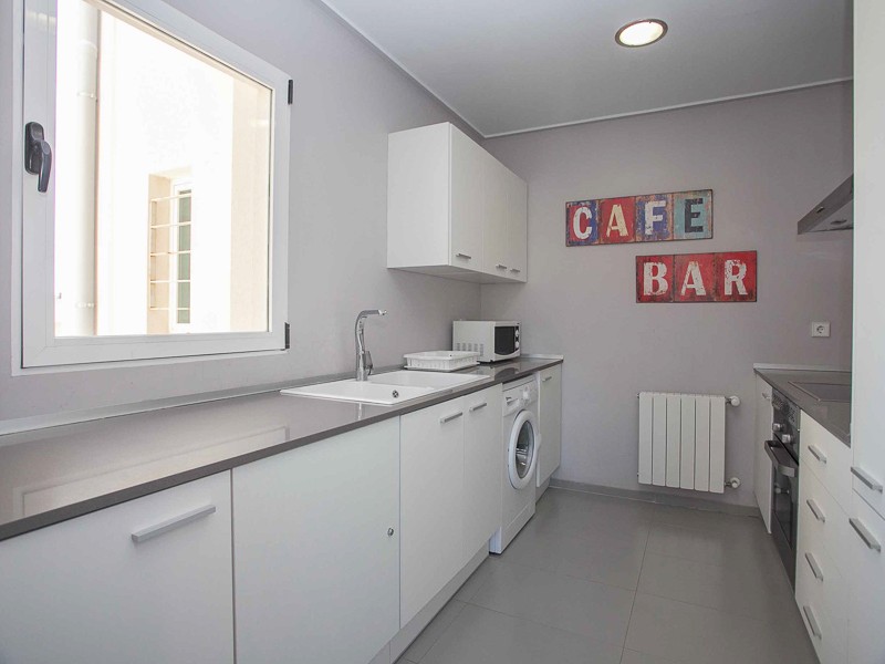 Площадь апартаментов составляет 110 м2 и включает в себя три спальни, две ванные, просторную кухню, холл, две террасы по 10 м2. Панорамные окна наполняют квартиру естественным светом и придают интерьеру стиль и изящество. Во всех спальных комнатах есть встроенные шкафы. Дизайн белой кухни производит приятное впечатление. Интерьер оформлен со вкусом, продумано все до мелочей.