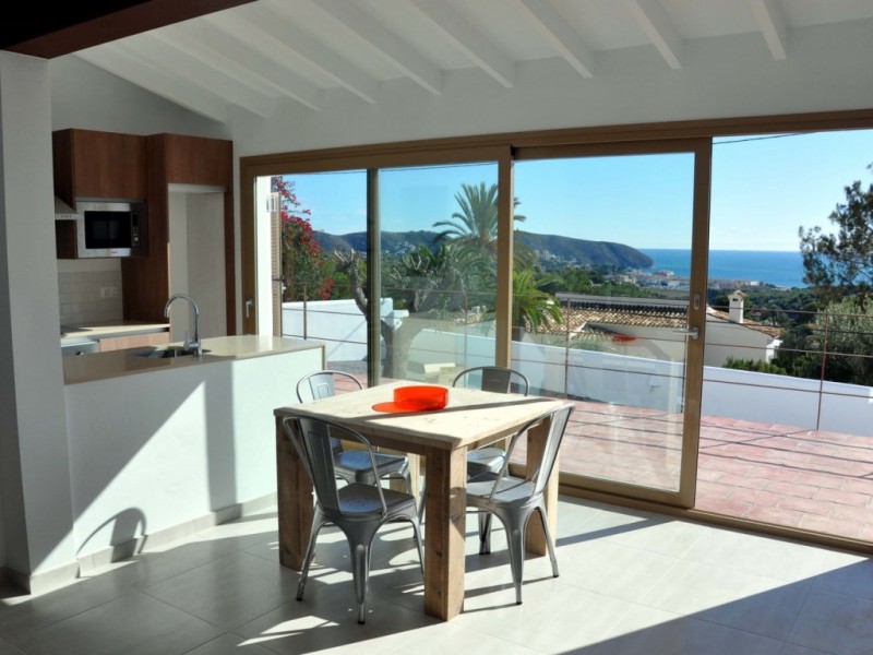 Современная вилла с уютным интерьером находится на побережье Коста Бланка в очаровательном городке Морайра между лесом и морским побережьем. Вилла представляет собой «микс» старинного и современного. Фасад выполнен, в характерном для Испании, средиземноморском стиле, однако внутри дом выглядит очень стильно, современно и свежо.