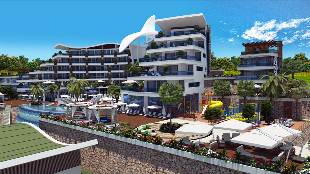 A unique location on the highest hill can enjoy panoramic view with a direct view of the sea and the Taurus Mountains and the magnificent resort town Konakli infrastructure.