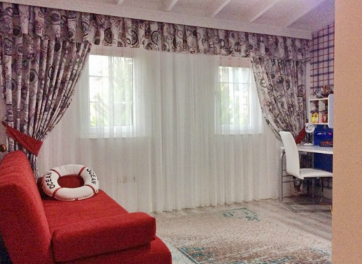 Furniture throughout the house is made of wood, interior furniture collection handmade silk carpets on the floor, on Konakh role shutters and curtains, on walls and on ceilings crystal chandeliers and lamps, one of the children's rooms done in a nautical style, fully equipped kitchen Furnished and equipped with appliances, 4 balconies, a large roof terrace with views of the mountains.