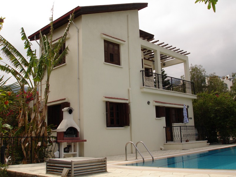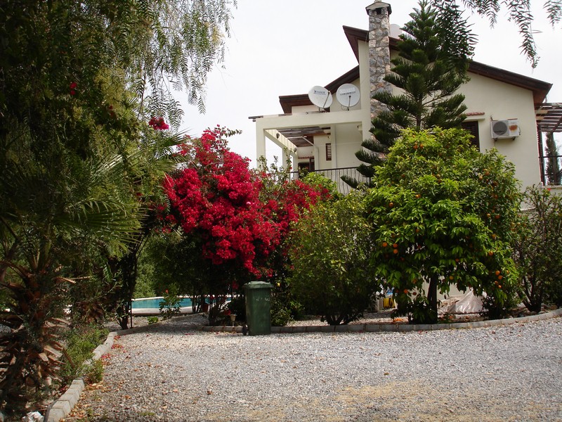 An excellent opportunity to purchase this cozy 3 bedroom villa with fruit trees and swimming pool in the large private garden in a peaceful area of Alsancak, close to all amenities. Main features • 3 bedrooms/ fitted wardrobes • Spasious lounge with fireplace • Open plan kitchen • En-suite and shower room • Ceramic flooring • Air-conditioning • Wooden shutters throughout • 10m x 5m swimming pool • Large garden with fruit trees • Private driveway for 6 cars • Sea & mountain views • VAT paid