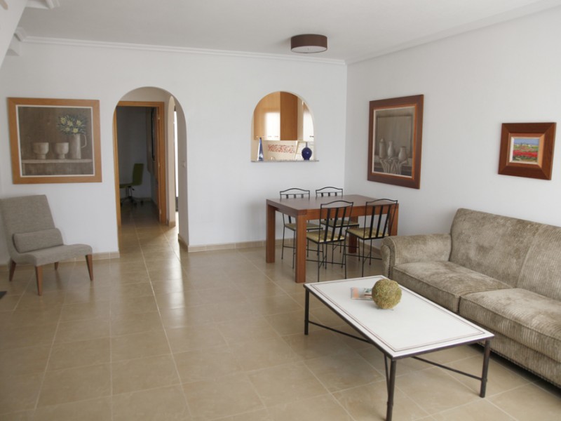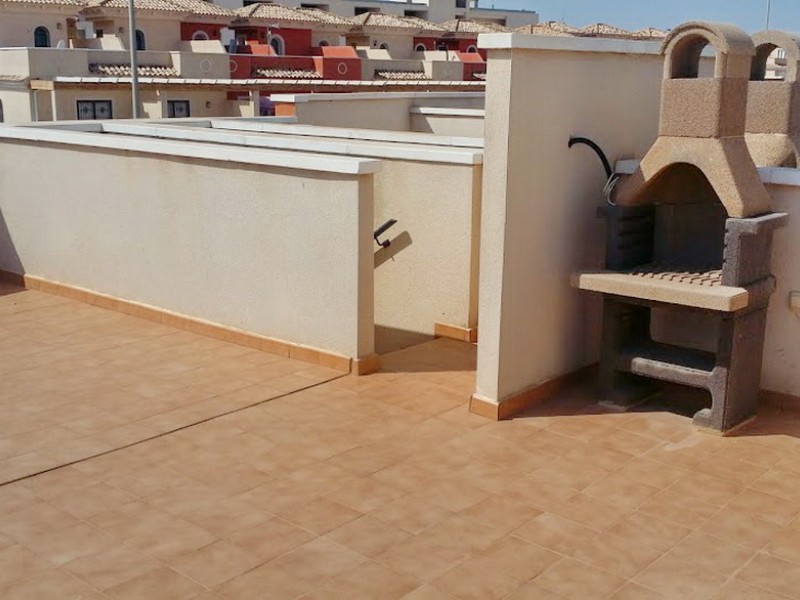 Дуплекс в Вильямартин на Коста Бланка площадью 85 м2 - это трехэтажный дом, на первом этаже которого расположился просторный салон с кухней американского типа, гостевой туалет и спальная комната. С кухни есть выход во внутренний дворик. Мраморная лестница ведет на второй этаж с двумя спальнями и террасой, с которой есть выход на большой частный соляриум. На соляриуме есть зона для барбекю.