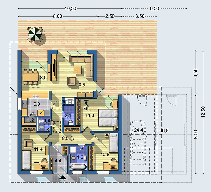 Кухня или столовая индивидуально могут быть разделены