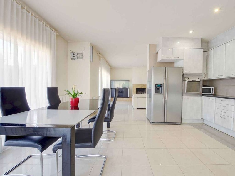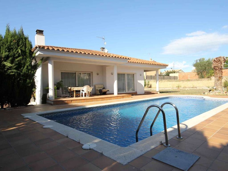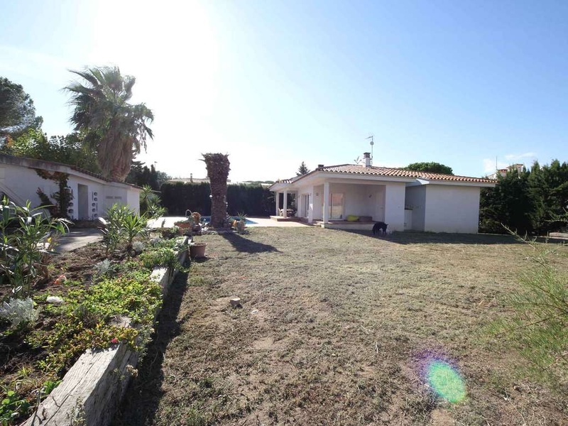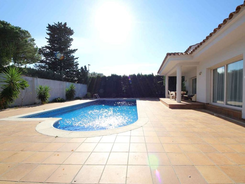 Newly built house (2005), all ground floor with private pool and garden, located about 800m from the Riells beach, consisting of large living room with open kitchen, 3 bedrooms, 2 bathrooms, storage room, terrace. Basement: Large garage and storage room / cellar. Oil central heating. Built area: 216,98m2 Plot: 1,200m2