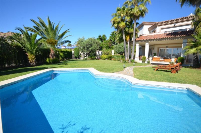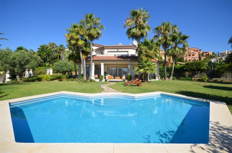 We offer a villa at an unbeatable price in the southern region of Spain, in the heart of Nueva Andalucia! The villa is built on a high level, equipped with central air conditioning with climate control in every room, the windows have electric shutters. It consists of two floors and a basement, which are linked by a beautiful spiral staircase. On the first floor there are: large entrance hall, guest toilet, a spacious living-dining room with fireplace, high ceilings and access to a large covered terrace with seating and dining area with access to the pool, fully equipped kitchen with appliances Bosch, dining room and bedroom with double bed with separate bathtub and shower with a balcony. The second floor includes two bedrooms with double beds and private bathrooms, as well as a master bedroom with fireplace, large walk-in closet and a bathroom with Jacuzzi and shower. Basement with natural light and ventilation, consists of a garage for 3 vehicles, fitness room, TV room and office. On the territory there are beautiful green areas with lawns and trees, as well as a beautiful swimming pool surrounded by lawn. Located in a highly desirable location, just minutes away from the Golf Club Las Brisas and only a five minute drive from Puerto Banus.