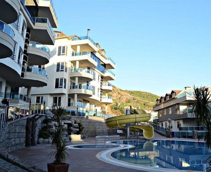 Flat for sale in Alanya, Antalya, Turkey. Residence project, a reality beyond your imagination, making it possible for you to enjoy all the beauty and views of the city and unique in nature. In our project, we have 84 residential apartments in 7 blocks. These homes consist of 28 apartments and penthouses on the roof, 12 duplex apartments and 44 normal apartments. The residence has apartments ranging from 55m to 140m. A new life is waiting for you in the residence, which is located in close proximity to the sports hall, playgrounds, recreational areas, a botanical garden and public space. Our project is located 350 meters distance from the Cleopatra Beach, 700 m from the shopping center, 750 meters from the hospitals and health centers and 2,700 meters from the castle. Technical details of apartments: The entrance door is metallic, interior doors are American paneled doors, living room has granite tile. The bathroom and toilet are ceramic tiles, windows, interior walls are on a removable water-based paint, air conditioning in every room, bathroom with shower and sink and floors with underfloor heating, Kitchen cabinets with glass coated white good package includes: electric oven, extractor fan, water heater, refrigerator, washing machine, dishwasher, Satellite TV systems, Internet, Elevator in each block, a large swimming pool, mini water slide, children's pool, indoor pool, partial whirlpool, fitness center, Turkish bath, Sauna , Steam Room, Massage, Children's park, botanical garden, artificial waterfall, BBQ area, Car park.