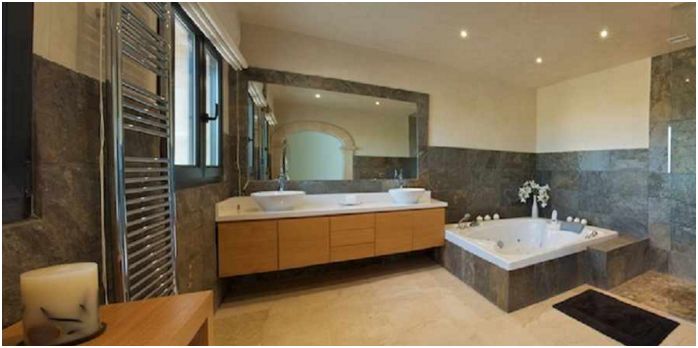 Top Class Finca and country home spot on the Golf course of Son Gual near Palma. The Villa features all possible ameneties in highest building and material quality. open plan kitchen, lift, bodega, Pool billiard and TV room, Gym, Driving and Golf Practice Range, Outside Pool and Jacuzzi, Triple garage