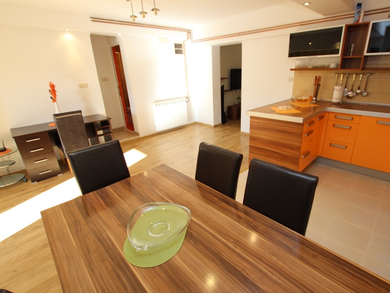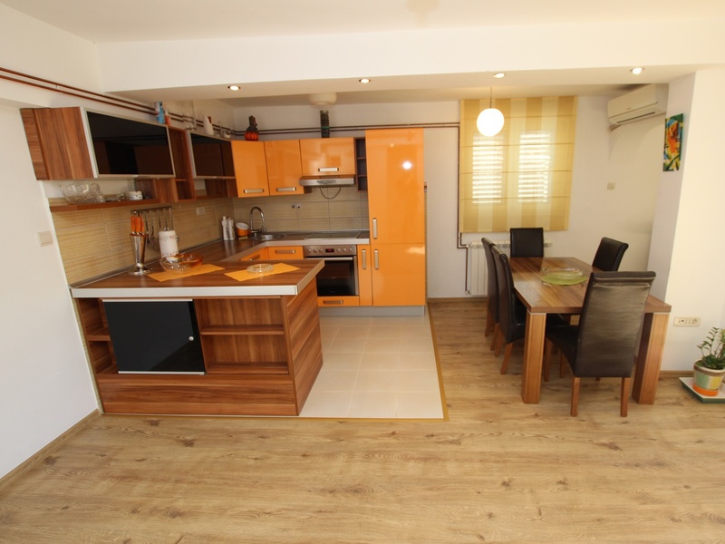 New, luxurious modern apartments are located in a very quiet area, ideal for relaxation and enjoyment. The apartment is on the first floor overlooking the garden and courtyard. Area of the apartment is 90 square meters, has two bedrooms, living room, kitchen and dining room, bathroom and terrace overlooking the garden. The apartment is equipped with two air conditioners, LCD TV (cable TV), DVD, wireless Internet, fully equipped kitchen with all utensils + microwave oven, electric kettle, dishwasher. Then, washing machine, iron and Ironing Board, hair dryer, mosquito nets. The apartment is ideal for families and children. Welcome!
