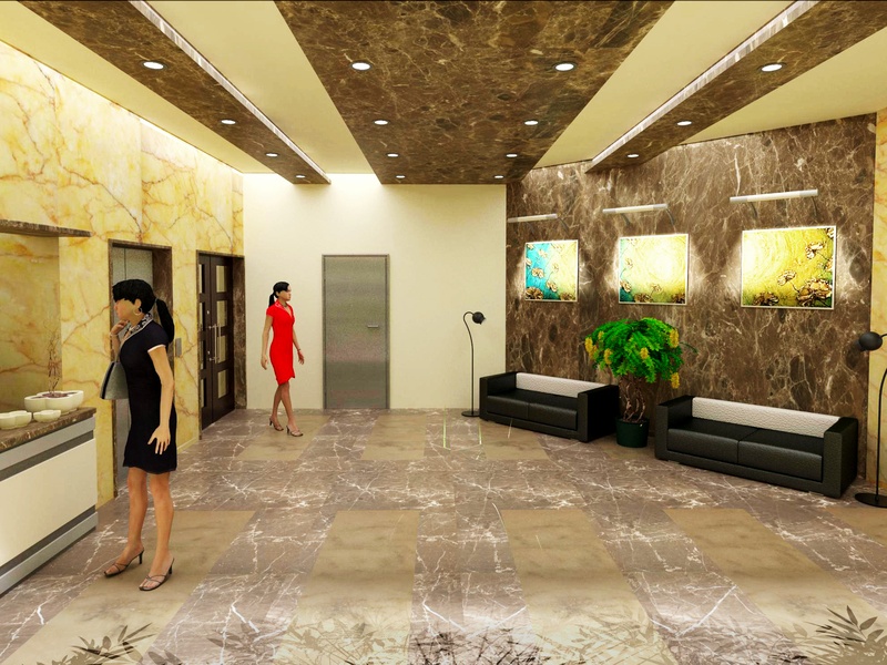 Общие части - люкс - полностью закончена с плитками на полу, штукатурки и краски стен и потолков.