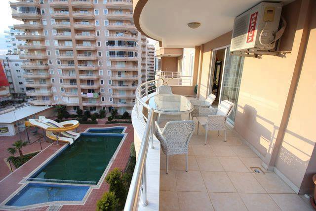 Продаются 2+1 апартаменты Махмутлар/ Алания! 10ти этажная резиденция находится на улице Ататюрк в 300 м от пляжа. Апартаменты расположены на 6том этаже, 120 м^2, полностью укомплектована с Американской кухней. Окна выходят на южную и северо-западную сторону. 2 спальни, 2 балкона, 2 открытых и1 крытый бассейн, Сауна, Хамам и Фитнесс-зал. Рядом с Резиденцией есть магазины, аптеки и автобусные остановки. ЦЕНА: 75 000 EUR