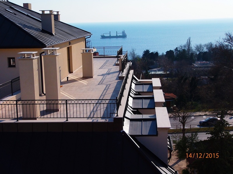Дом шестиэтажный, при строительстве использовались самые современные технологии и материалы. На крыше комплекса огромная терраса, с которой можно любоваться шикарным видом на море. Есть подземная парковка, в которую можно спуститься на лифте.