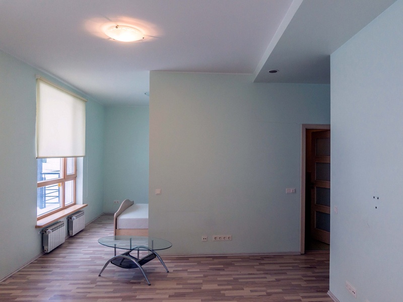The apartment indoor decoration is of high quality. It has a modern layout with a spacious living room, combined with a kitchen area.