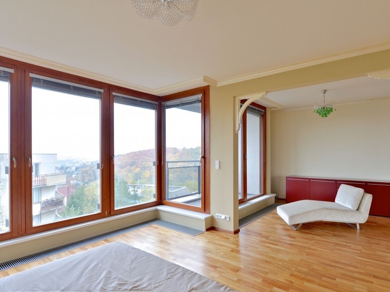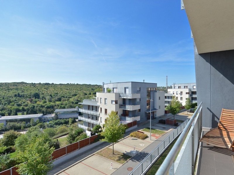 Продается современно меблированная квартира с террасой и лоджией, откуда открываются виды на зеленые насаждения. Квартира находится на 2-м этаже закрытого типа резиденции с парковкой и детской площадкой, на возвышенности в Праге 5 – Радлице (Praha 5 – Radlice).