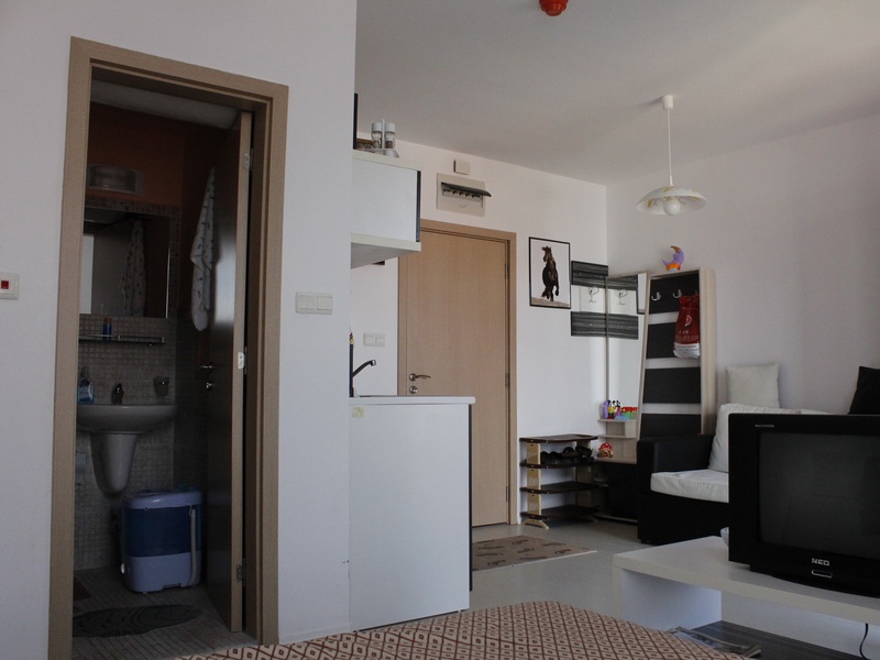 Продаем меблированную студию, площадью – 40 кв.м, в построенном комплексе класса „люкс” на Солнечном Берегу. Квартира находится на 5-ом этаже, и состоит из зала с кухней, сан.узла и балкона. С видом на бассейн. С мебелью и техникой.