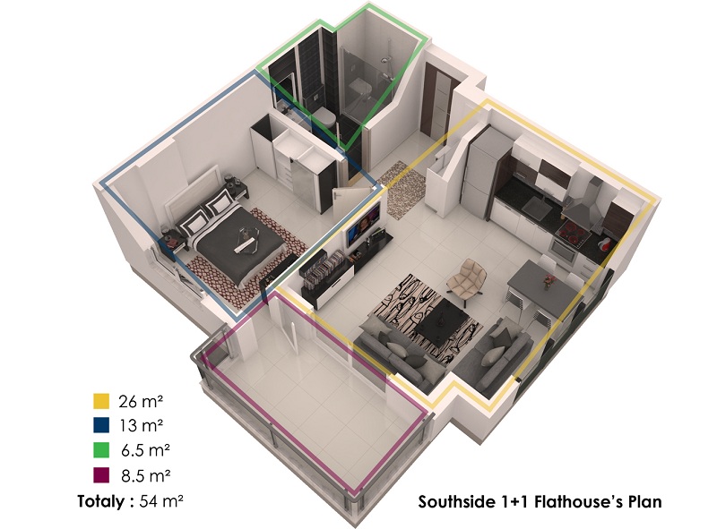 Our Project is in the Kestel district, east of Alanya and it is on approximately 1 decare land. It consists of one block. Our project which includes 10 1+1, and 5 3+1 duplex (15 apartments in total) is one of the favorite projects of our Alanya, and it draws attention and is taken as an example. In our project evaluated and developed by us with architects, designers and engineers who are specialists in their fields, the needs and the comfort of our customers are emphasized to the maximum extent and the swimming pool, the sport center, the sauna and the parking lot included in the project are provided to serve you.