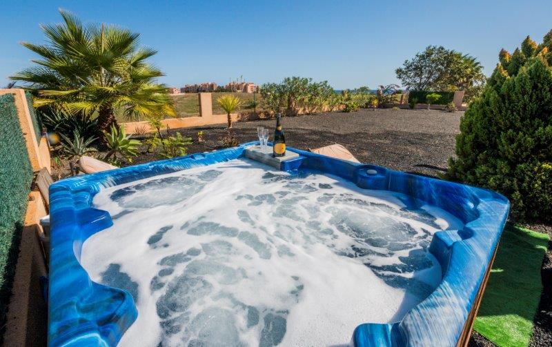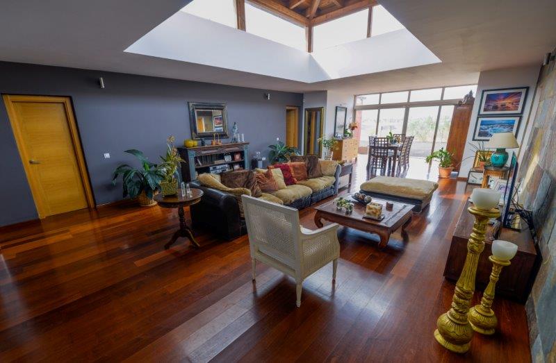 Wonderful villa in typical Canary-Islands-style building. Area of 800 square meters, 200 square meters composed as follows: 1 large central lounge room with 4 bedrooms, 4 bathrooms, kitchen and access to the outside under a beautiful patio where there is a jacuzzi. The villa overlooks the golf course, walking you reach the famous beach of Caleta de Fuste and it is close to shopping centers, casino, cinemas, schools and sport areas. From the villa you can enjoy an impressive view of the sea and of the nature that surrounds the area. The villa is fully furnished as shown in the pictures. - One of the place where to be.
