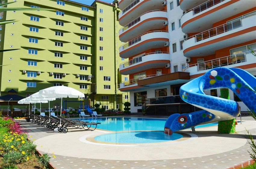 Краткосрочная аренда квартиры в районе Алании- Махмутлар. Комплекс с бассейном,детской водной горкой, сауной, фитнесс залом, джакузи, бильярдной комнатой, теннисным кортом, беседкой для барбекю, личной автопарковкой, кодовым замком на входево двор и комплекс, консьерж. Квартира очень просторная, удобна для проживания двумя семьями, так как имеет две спальни со своими выходами на балконы, находятся в противоположных сторонах коридора, не будет столпотворения в душ и туалет по утрам, так как их тоже два ) Гостинная совмещенная с американского типа открытой кухней. Общая квадратура 120 кв.м., этаж второй, балкон и окна выходом на бассейн, можно следить за детьми ) ну или просто сидеть за стаканчиком пива на балконе с ничем не закрываемым видом. До моря 150м, магазины, бары, маркеты, базар, и даже парк и русскоязычный культурный центр Махмутлара( на случай, если захочется детей отдать на какие нибудь курсы образовательные ) в двух шагах от дома ). Цена зависит от сроков аренды, коммунальные услуги оплачиваются отдельно по счётчикам, 30 евро берётся единоразово при выезде за уборку.