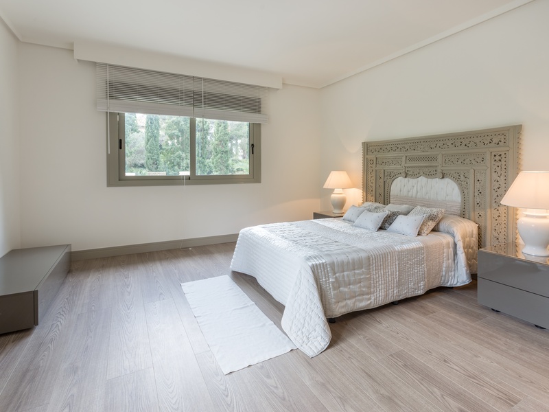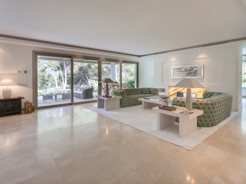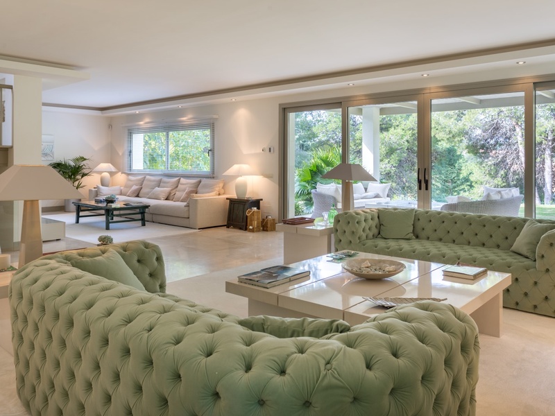 Excellent villa in Los Monteros based on white Spanish modern style with ceramic tile Arabic roof. Very close to the sea, frontline golf. Entrance hall, five bedrooms with en suite bathrooms, guest toilet, main hall, lounge, dining room, living room, kitchen, porch, all of them very large. Onyx fireplace lounge and dining room. Aged marble flooring in porch and gardens. Marble floors on ground and first floors except in bedrooms. 4 car garage. Room facilities. Storage rooms of over 100 m2. Oversized pool with waterfall emerald tile, lighting color. Ideal for golf enthusiasts. Very calm tranquil area with direct access to the golf courses and close to the sea. Rental 10.000€ weekly.