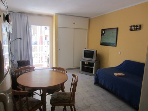 Distribution: Living room with 2 fitted-in wardrobes and sofa bed. American fully equipped kitchen. Bathroom with tub. Grey ceramic flooring. Water included in the community fees.