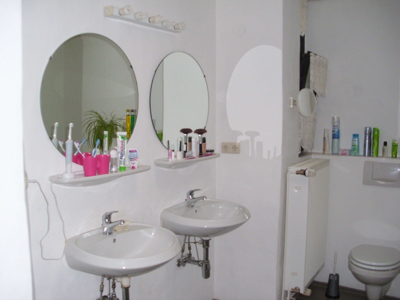 The ground-level (1 level) as generation flat, apartment or office space usable part of the object is from the inside through a door or from the outside through a separate entrance accessible. The area with exposed brickwork has three rooms, kitchen, bathroom. The kitchen with ceramic flooring is fitted with a high quality fitted kitchen in L-shape (real granite work / wall plate, induction cooker, oven, dishwasher ...). The fully tiled bathroom is equipped with underfloor heating, shower, toilet, tub and sink semicircle. The great room with fireplace and floor to ceiling windows on the corner is equipped with textile floor covering. The terrace in front of it can be accessed through a large sliding door. The other two rooms are also equipped with storey-high windows and also with real wood parquet.