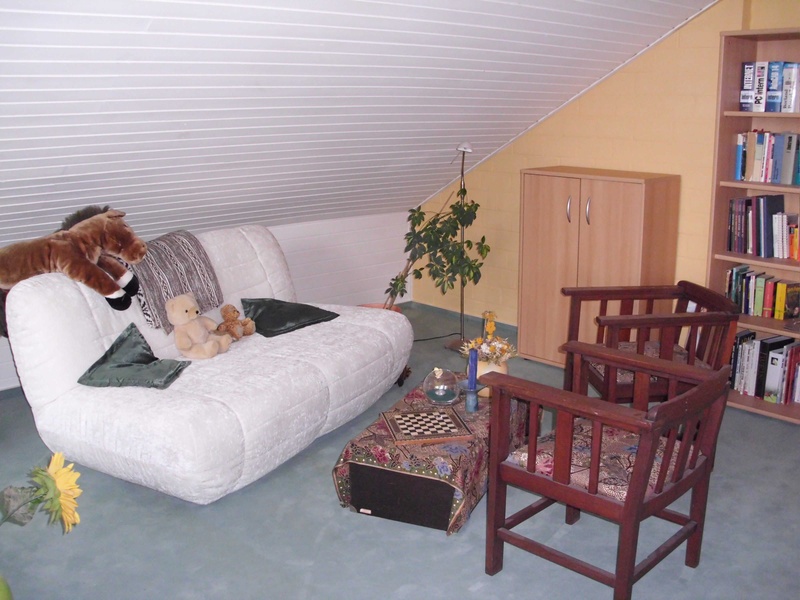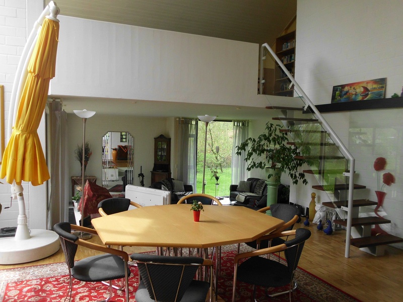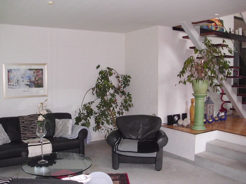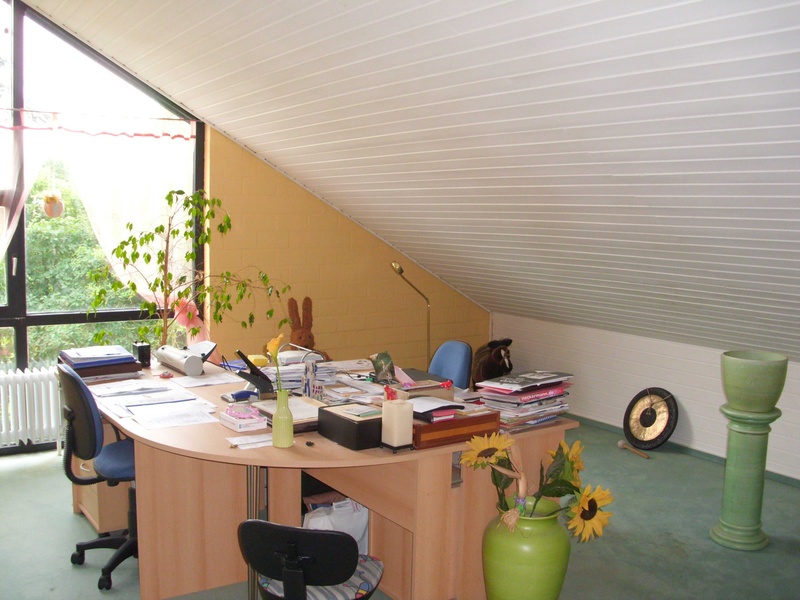 The non-visible from the living and dining gallery (3 level) with its oblique holzverstäfelten wall and its textile flooring makes for a sunny retreat. The gallery is also ideally suited as a work and study area.