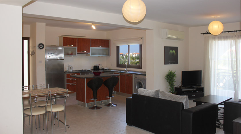 Это стильная и просторная 3-х комнатная квартира на первом этаже, Имеет 8 спальных мест. С видом на красивые сады Sea Magic. Кухня/столовая и гостиная зоны открытого плана. Одна спальня имеет две двухъярусные кровати и дополнительно односпальную кровать, с выдвижным матрацем. Две спальни имеют двухспальную кровать (с приватной ванной комнатой). Существует также отдельная семейная ванная комната. Все комнаты оснащены кондиционерами. Уборка, электричество и вода включены в арендную плату (есть лимит).