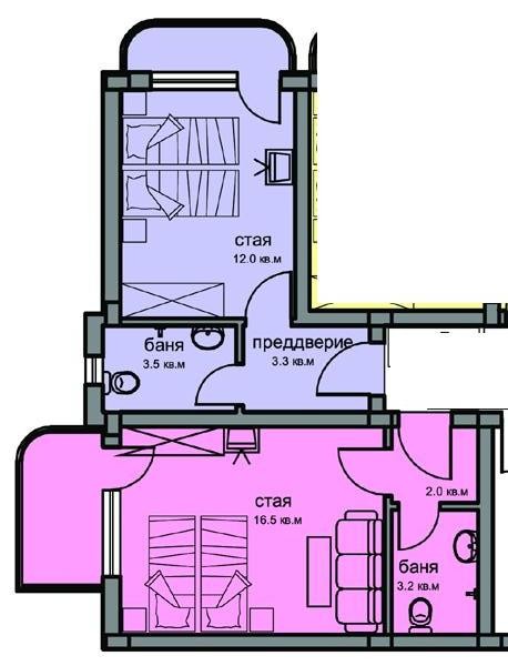Цена: 39 600 евро Двухкомнатная квартира (две студии, объединенные в двухкомнетную квартиру) площадью 74