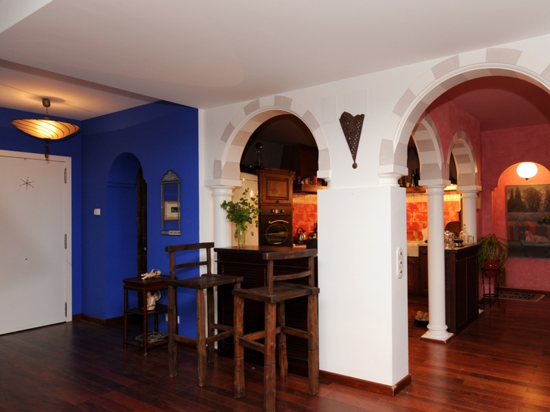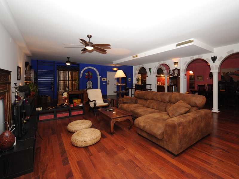 From the terrace of 40 meters sky seen with a beautiful Arabic font , you can enjoy quiet evenings reading and good company with the best views of the Mediterranean in the shade of giant ficus who chairs the garden. Being ground floor, gives it a look of detached house . The protagonist of the apartment is its bright and huge hall of 110 meters, attached to the dining room for 3 arches on marble columns . The large kitchen , fully furnished , practical and invites you to share in its two open bars those moments of cooking between lectures and stoves that you love , Your countertop and sink aged marble and Italian and made tiles hand confer a bohemian air and endearing time.