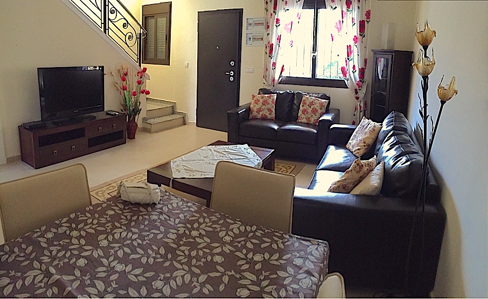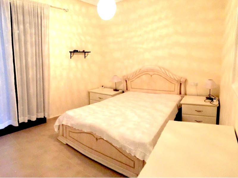 На первом этаже 1 спальня. Большой салон, отдельная кухня, санузел с душевой кабиной. Из кухни выход на задний двор. Из салона выход во двор с большой террасой и на бассейн с зоной отдыха.