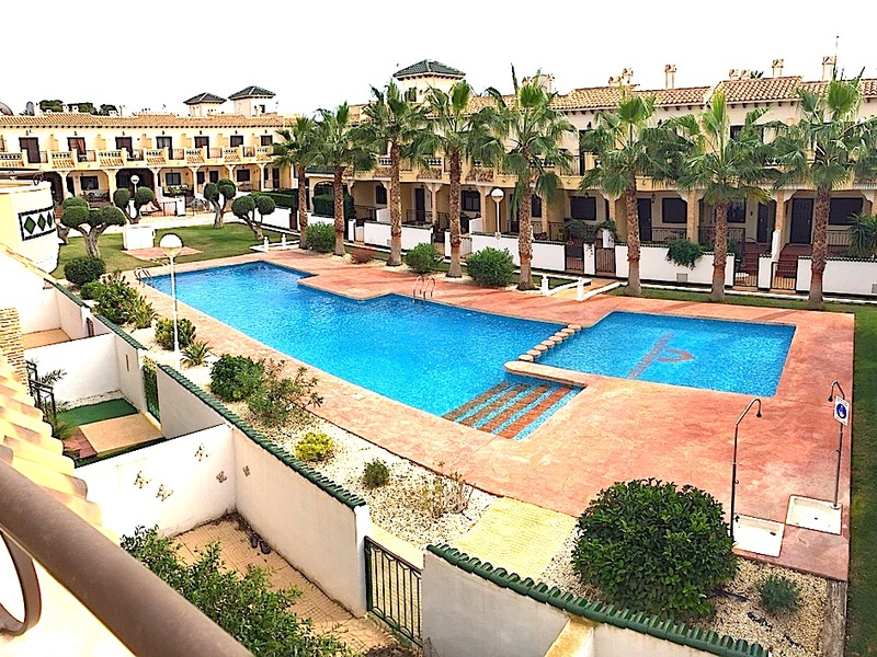 Солнечный таунхаус в закрытом жилом комплексе с двумя бассейнами и зеленой зоной для отдыха жильцов. Раположен в резиденции Manuela в Ciudad Quesada. Rojales.