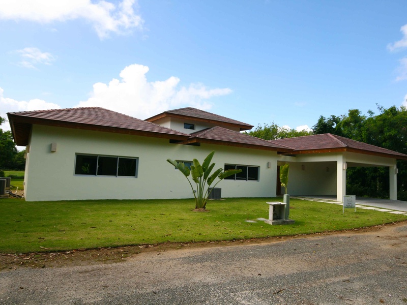 Villa with three bedrooms and beautiful view on the golf course in a quiet residence Punta Blanca. The villa has one level, three bedrooms with showers and dressing rooms, maid's room, guest bathroom, laundry area, dining area, kitchen, covered terrace, private swimming pool, covered parking.