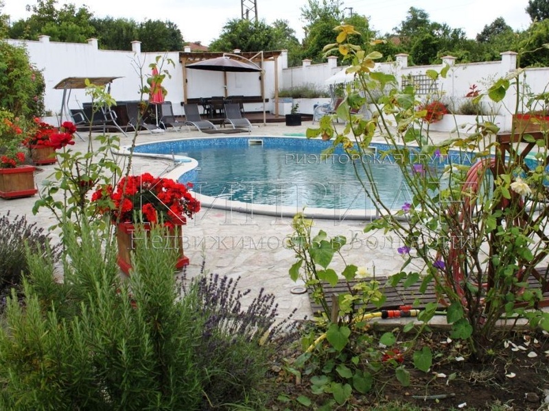 Лот 5909 Современный дом в 25 км от Варны. Площадь дома 217 кв.м. Участок 1140 кв.м. Дом новый, в очень хорошем состоянии. Включает в себя просторную гостиную 49 кв.м. с полностью оборудованной кухней, 3 спальни, 3 ванные комнаты, прихожая, столовая, кабинет, гардеробная, прачечная. В доре есть крытая парковка. Дом отапливается с камином и кондиционерами. Существует охранная система, наружное освещение, автоматические входные ворота во дворе. Большой бассейн 11 х 5 метров. Двор озеленен и хорошо поддерживается.