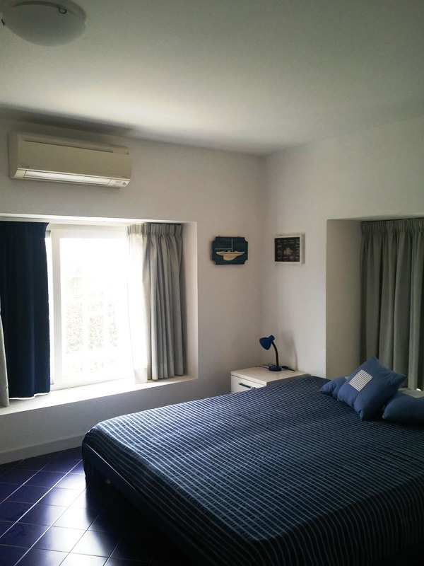 Интерьер виллы выполнен в средиземноморском стиле, с преобладанием синих и жёлтых оттенков. На 1-м этаже находится спальня с 2сп.кроватью, ванная комната с душевой кабиной и просторная гостиная - кухня.