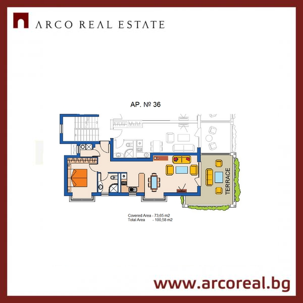 The complex was designed by the reputable Spanish architectural studio Kloster & Notenson in 2006 that perfectly fit into the architectural details of Mediterranean aesthetics together with Bulgarian traditions of wrought iron, wooden beams, stone floors and beautiful landscaping. All apartments in the complex are finished with high quality materials – flooring with natural stone, luxury fitted bathrooms with underfloor heating, hot and cold air-conditioning split system, all of the large apartment are with marble fireplaces.