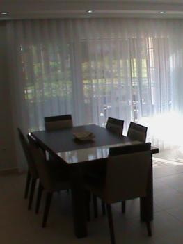 Квартира состоит из просторной гостиной "американского" типа, совмещена с кухней, двух спален (в одной двуспальная кровать, во второй одно- и двуспальные раскладывающиеся кресла-кровати) и двух ванных комнат.