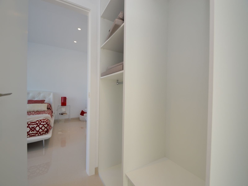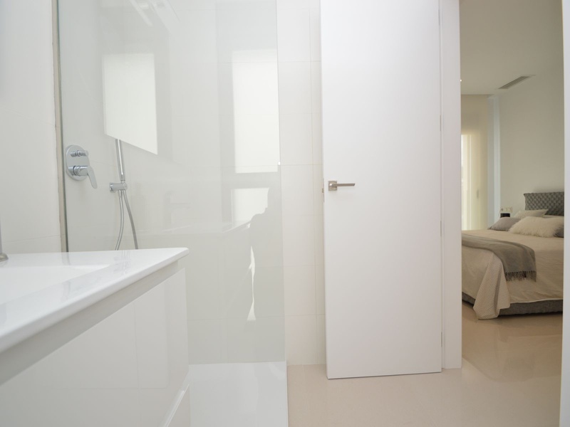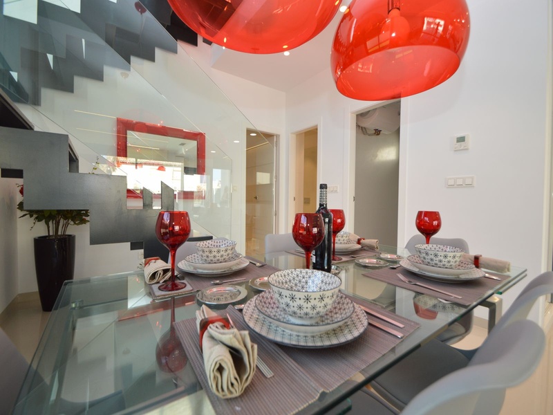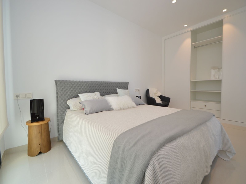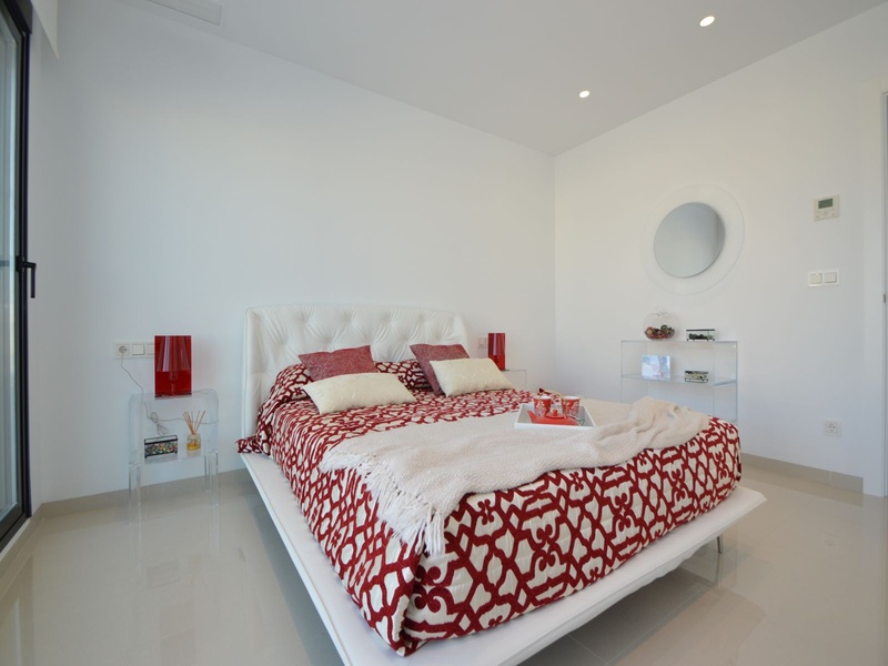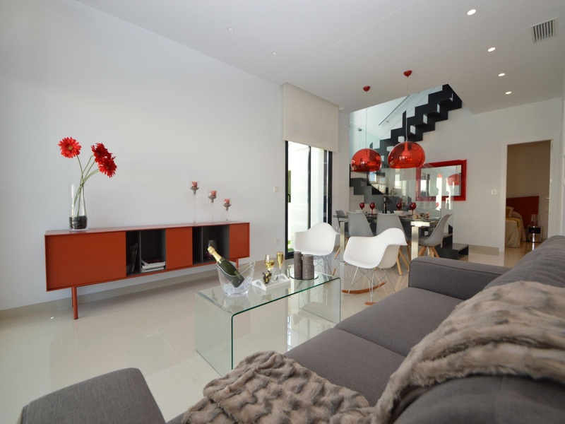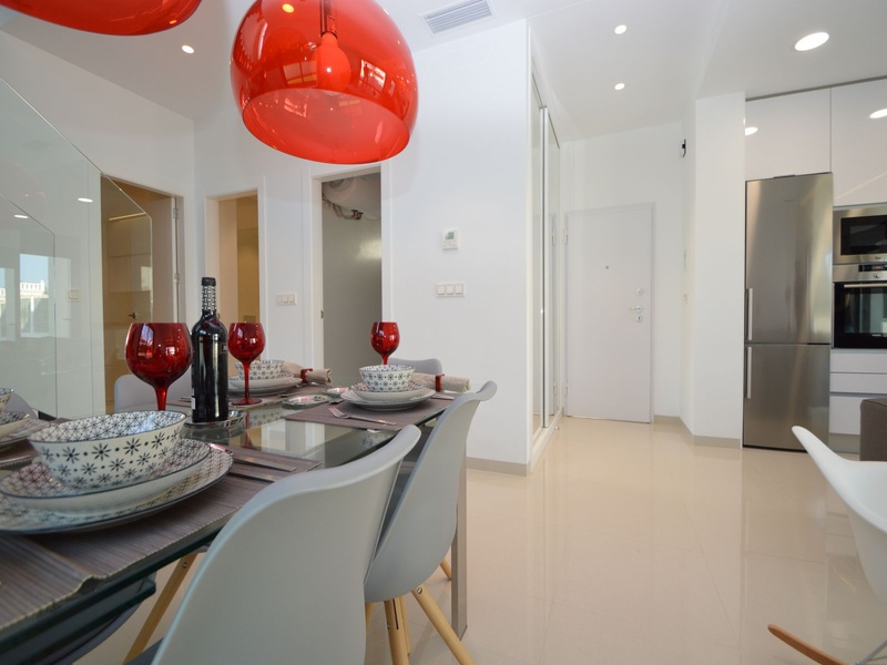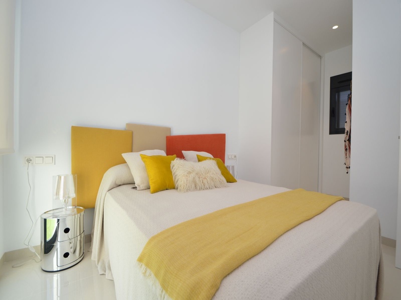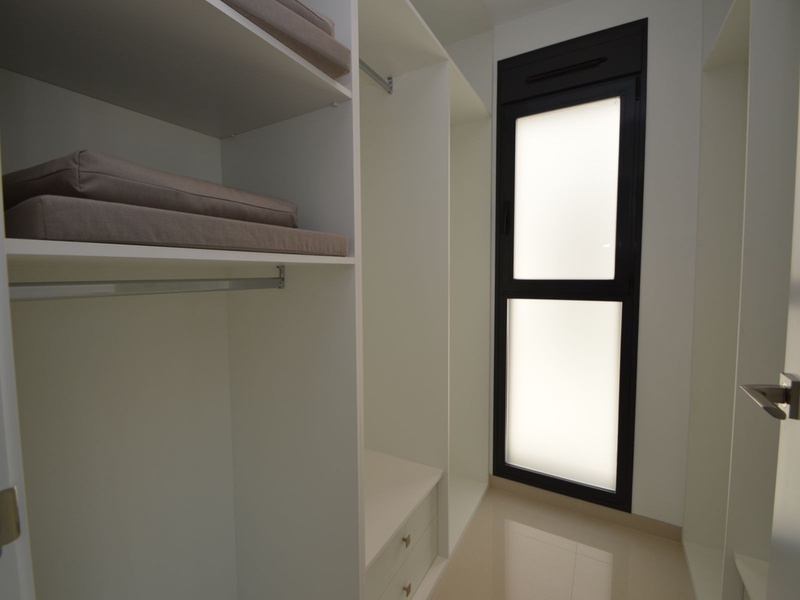 A private modern house. New build property, high quality construction and finishing materials. Energy Efficiency class B. The villa has a built surface area of 163.35 square meters, distributed between two floors. It has a large porch, a living room, a kitchen, 1 bathroom, a laundry room, a storeroom and 1 spacious bedroom with a private dressing room on the ground floor, and two large bedrooms with private dressing rooms and bathrooms on the first floor, plus the master bedroom has a large terrace with a surface area of 31.96 square meters. The house also disposes of a solarium with a surface area of 49.70 square meters. It is located on a plot with surface area of 348.26 square meters, covered with a garden, with a private pool and a parking space for one car. Thermalt and acoustic insulation, waterproof walls on the out side, armored entrance door, motorized blinds with independent ventilation, aluminium double glazed windows, fully furnished and equipped kitchen, bathrooms and laundry are also fully equipped, air conditioning with an individual machine for each floor, solar water heater, pre-installation of acclimatization of the pool, automatic irrigation system. 350 meters from the beaches of La Marina and El Pinet, consisting of soft golden sand that stretch for almost 3 kilometers along a strip of impressive natural dunes, next to a large pine forest and the Salinas del Pinet. These beaches dispose of blue flags, coastguards, restaurants by the edge of the sea, and a sports station that offers a variaty of water activities. The area has all the amenities possible, it is located 13 kilometers from Elche, 20 kilometers from Torrevieja and 25 kilometers from Alicante.