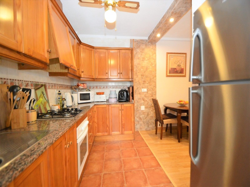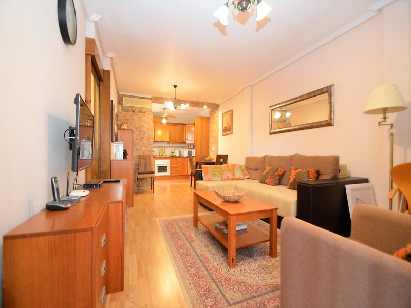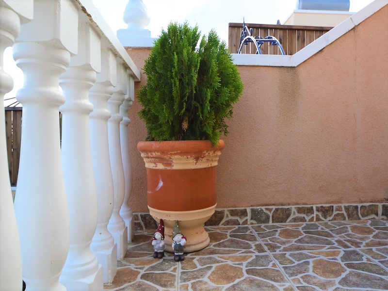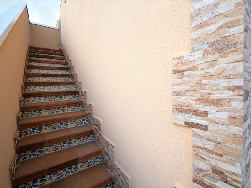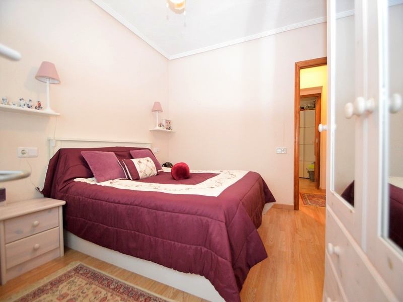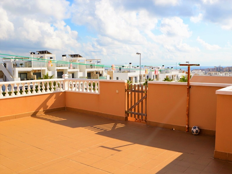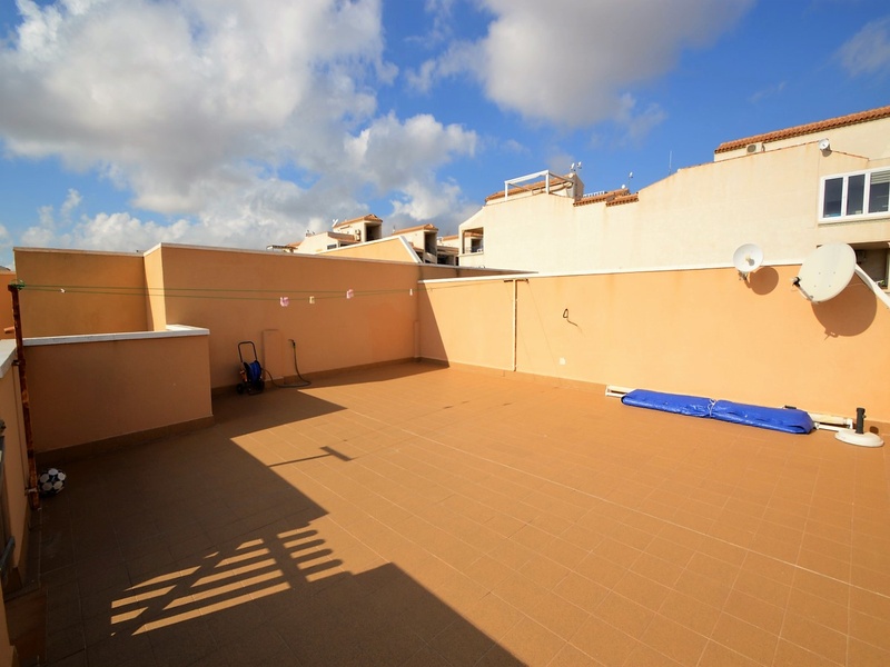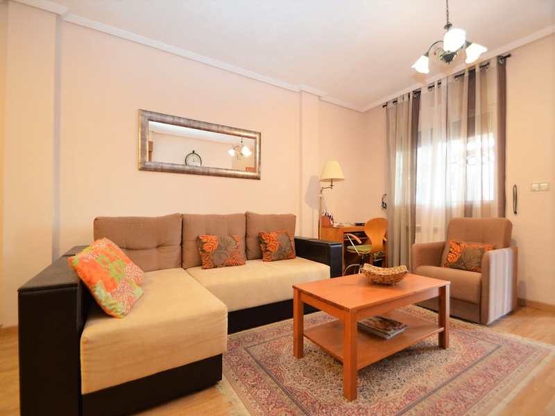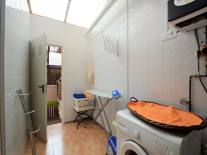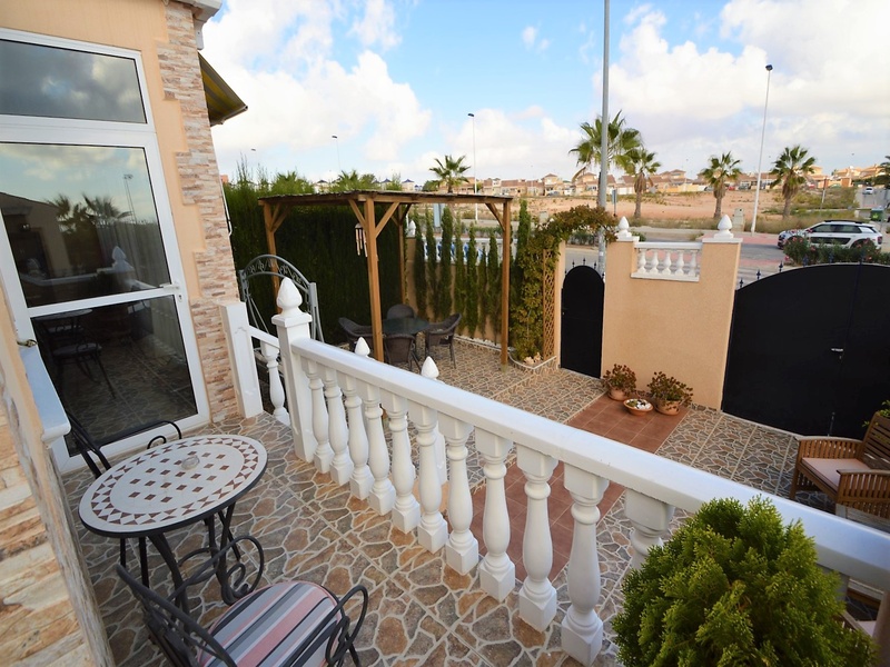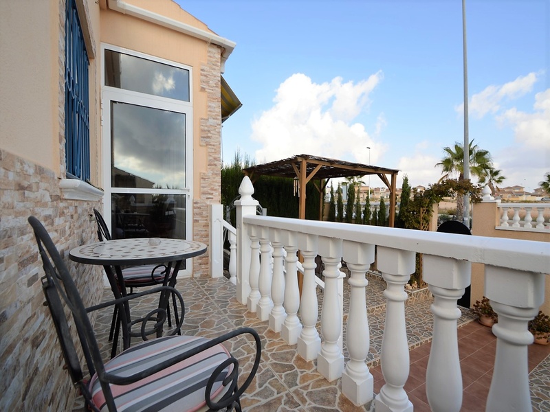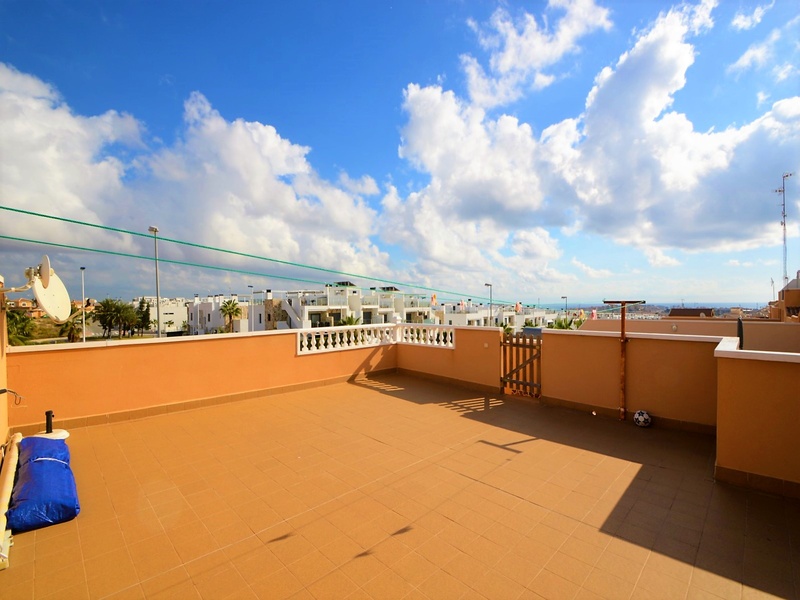 Semi-detached corner house for sale in Torrevieja, in the urbanization of Senuela, on the edge of Orihuela Costa. The house has 70 square meters of a living area distributed between the living room with an open kitchen, a laundry room, two bedrooms and one bathroom – all on one floor. Neoclassical interior design, comfort and cosiness in every detail. Impeccable condition, constructed in 2007, totally repaired in 2016. Fully furnished and equipped with household appliances. The house also has a storage room on the house plot and the possibility of opening a large basement room. Quality construction and finishing materials: laminate flooring in both bedrooms and a living room, air conditioning,, central heating, protective grilles, an armoured door, a shower cabin, single-lever valves, etc. The house has a large solarium with an area of 65 square meters overlooking the sea and a plot of 180 square meters, with an entrance for one car, a barbecue with a dining area and several seating areas. Urbanization has a common swimming pool. Location in a quiet residential area, close to all amenities and services. Schools, supermarkets, bus stops, several shopping centres with shops, pharmacies, banks, restaurants, cafes, etc. are within a walking distance from the house. The magnificent beach of Punta Prima and the best beaches of Torrevieja and Orihuela Costa are in a 5-minute driving distance.