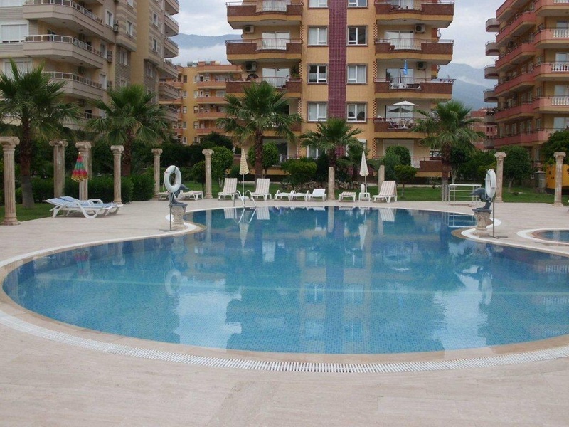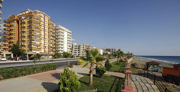Location: Mahmutlar These apartments and penthouses are beach front with sea and mountain views. The complex has 2 blocks and a shared pool in landscaped gardening. The complex is 5.213 m2 and situated in the centre of Mahmutlar, 12 km away from Alanya. There is an under passage to reach the beach. Within 300 meters there are shopping centers, post office, change office, restaurants, bars, a weekly market and buses to Alanya.