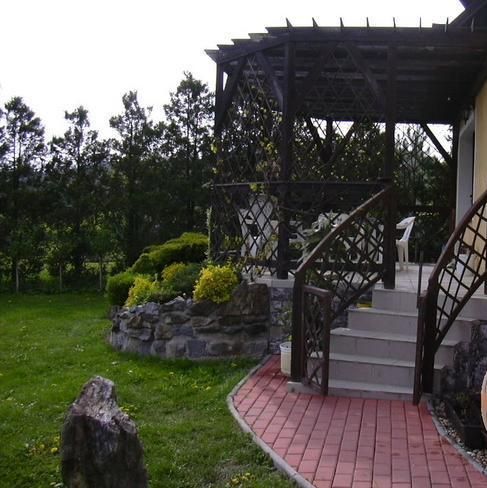 В доме имеется: просторная гостиная с выходом на террасу, кухня холл с камином, 5 отдельных комнат, ванная, душевая, туалет. Гараж. Летний домик. Большой, ухоженный палисадник. Дом был построен в 2000 году. Деревянные окна. Ламинат. Собственная скважина (в городе также строится водовод).