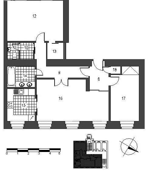 Полностью оборудованный кухонный бокс, гостиная, 2 спальни, ванная комната, туалет. На полу – паркет. Высокие потолки.