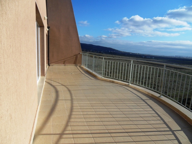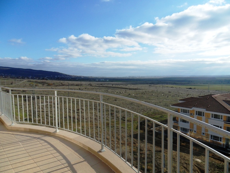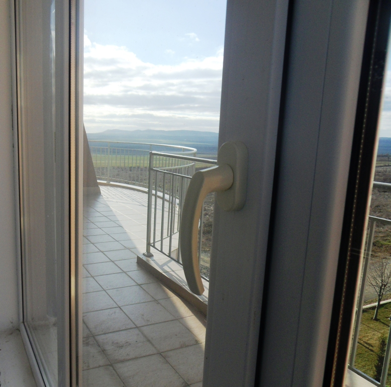 The apartment is with a floor space of 145,02 sq. m., is in top condition; it is for sale unfurnished. There is an open-plan kitchen with a living room, two bright bedrooms, a bathroom with toilet, two bedrooms, and one big balcony around the apartment with fantastic views. It is situated on the forth floor in building 1 of the complex. The property comes with installed ceiling and wall lamps. The walls are plastered and painted with white latex paint.
