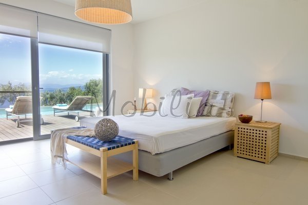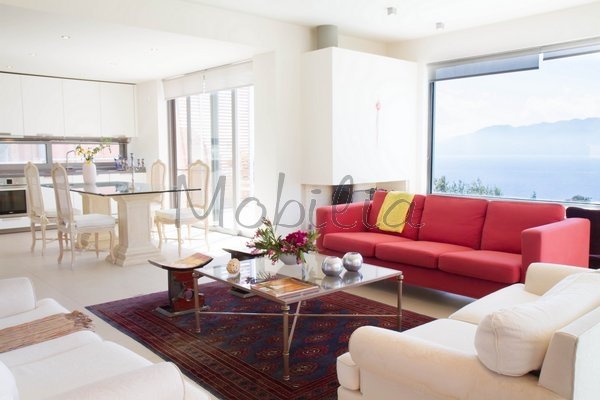The house is on three levels with a large living room with fireplace and open kitchen on the ground floor with direct access to a lovely courtyard grass and a nice covered veranda. The three bedrooms with bathroom en-suite (one bedroom also with kitchenette) are on the same level as the swimming pool, the barbecue, the garden and the magnificent view of the sea.