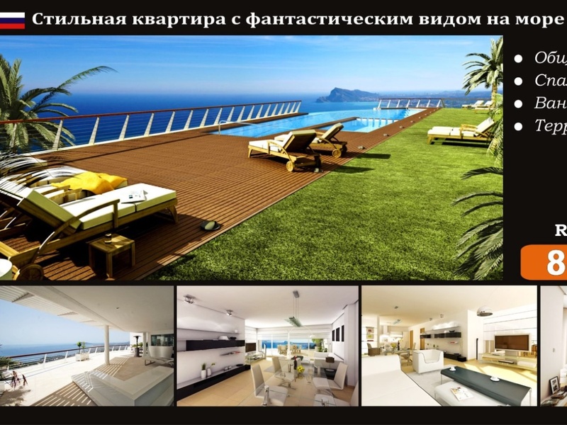 Stylish apartment in Spain with fantastic panoramic sea views in the urbanization Altea Hills (Costa Blanca). Total area: 314 m2 Area: Altea Hills Bedrooms: 3 Bathrooms: 2 Sea View: Yes Distance to sea: 2.5 km Lot: ALH151115 PRICE: 849 000 ...