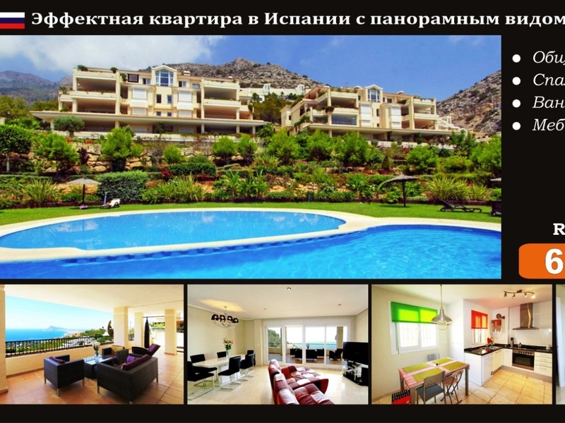 Spectacular apartment in Spain with panoramic sea views in a guarded urbanization Altea Hills (Costa Blanca). Total area: 271 m2 Area: Altea Bedrooms: 3 Bathrooms: 2 Sea View: Yes Distance to sea: 2 km Lot: ALH150913 PRICE: 650 000 € The...