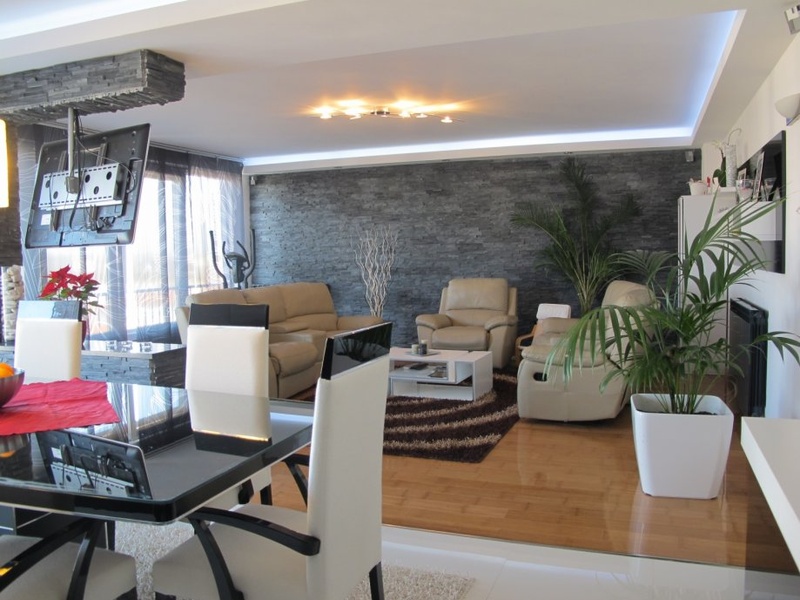 It consists of 3 bedrooms, large bathroom, living room with kitchen and pantry, balcony of 30 m2 which has stairs that lead to the