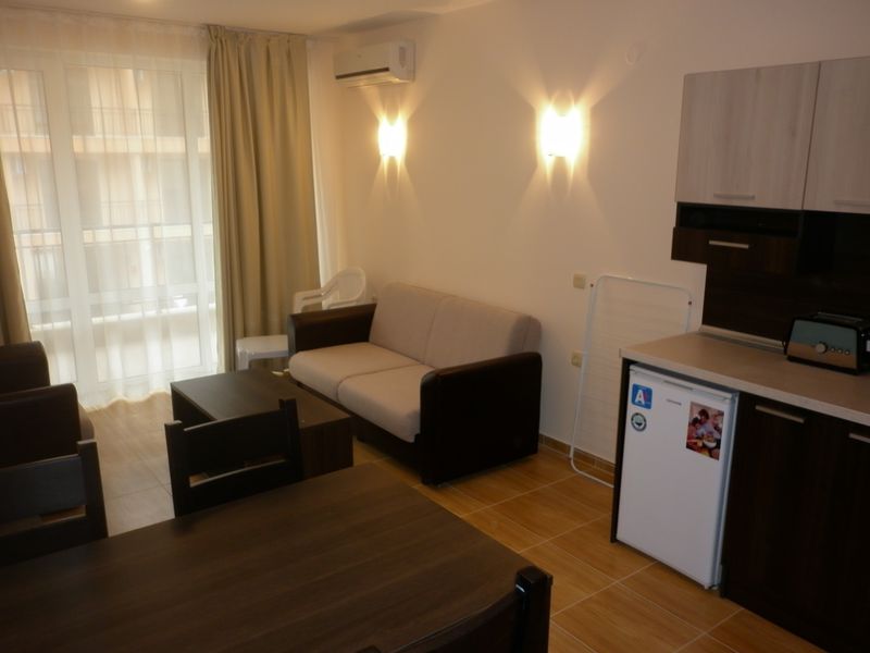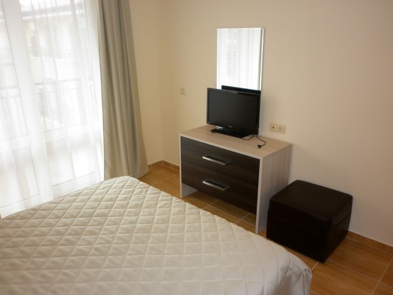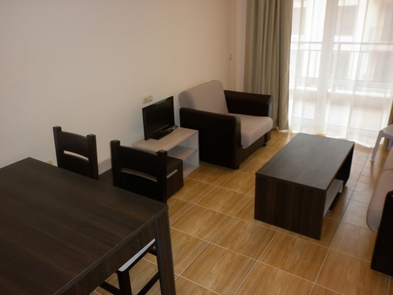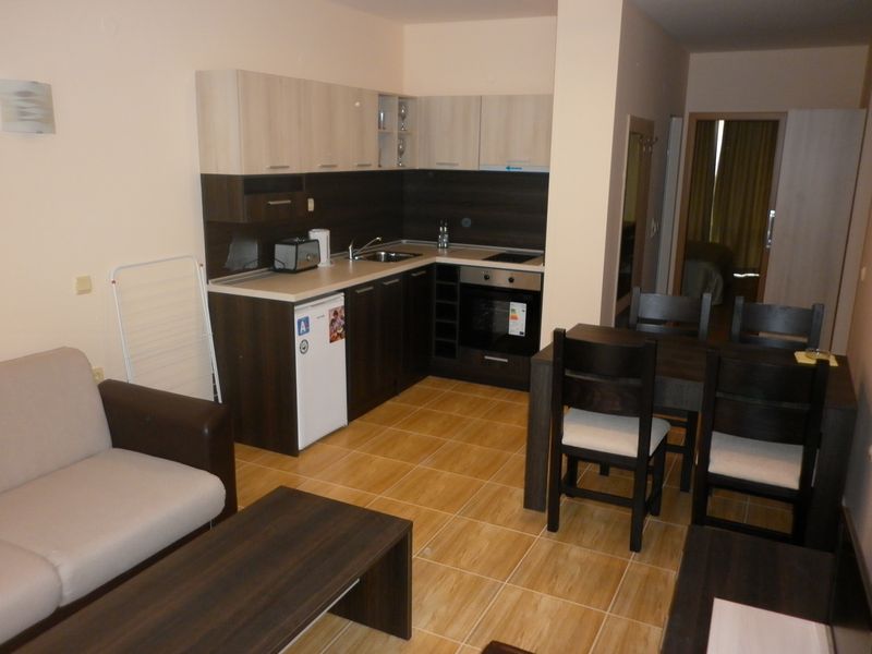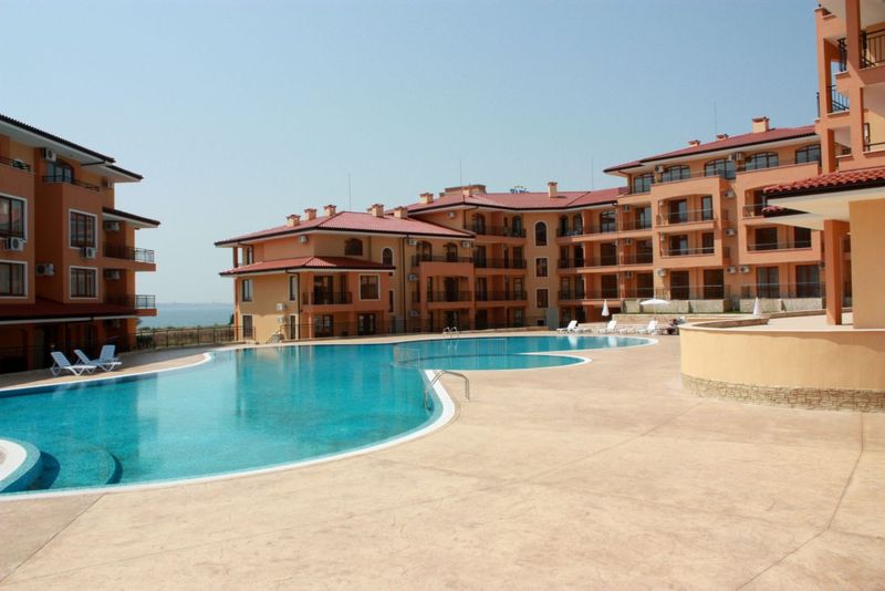Very well located 1 bedroom third floor apartment, inside a quality private condominium “Sky Dreams”, only 1km. from the Marina of Saint Vlas, walking distance to the beach and all amenities. This charming Apartment has exceptional views towards the Sea and the beach, comes fully furnished to very high standard. Kitchen is fully fitted, Air-condition fitted with hot and cold, large outdoor terrace facing the pool and gardens. Best views in the market nowadays!