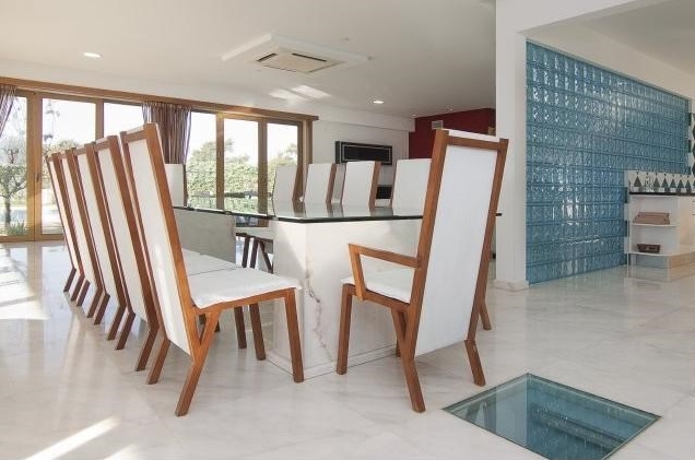 In the basement presents a garage with automatic gate and up to five cars, a laundry room, a room for employees, gym, indoor pool, jacuzzi and a games or movie theater.